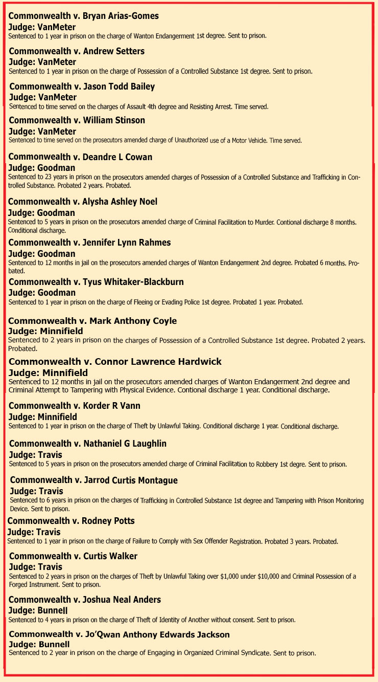 SENTENCINGS THE WEEK OF APRIL 4TH, 2025