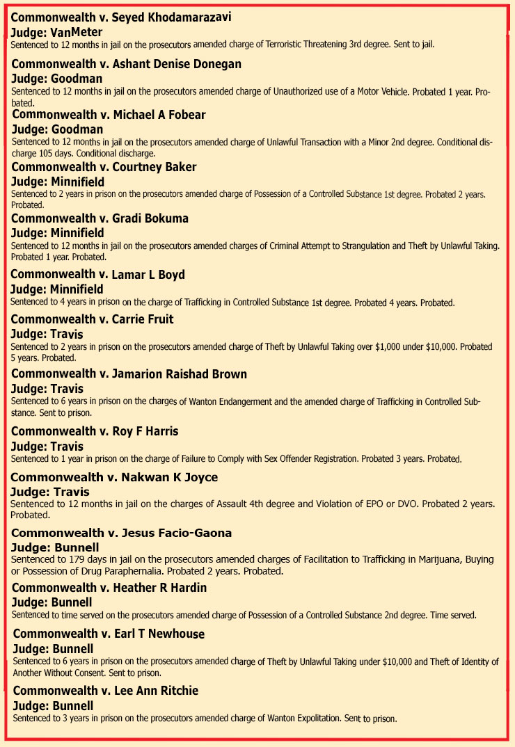 SENTENCINGS THE WEEK OF FEBRUARY 13TH, 2026