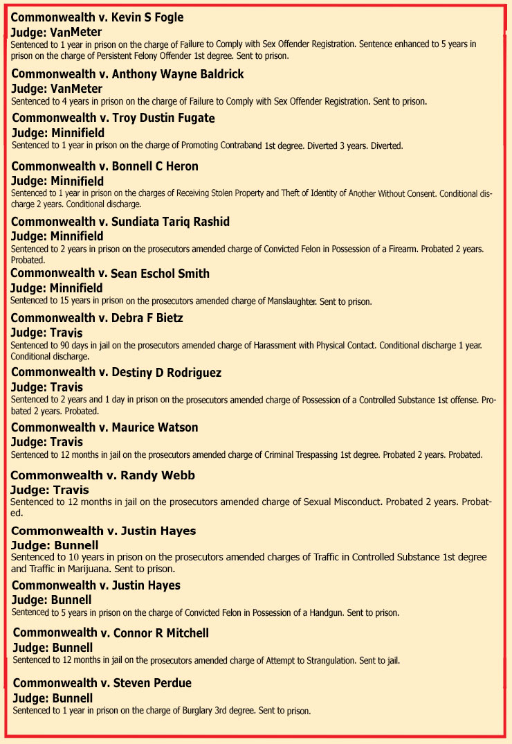 SENTENCINGS THE WEEK OF FEBRUARY 20TH, 2026