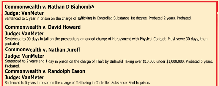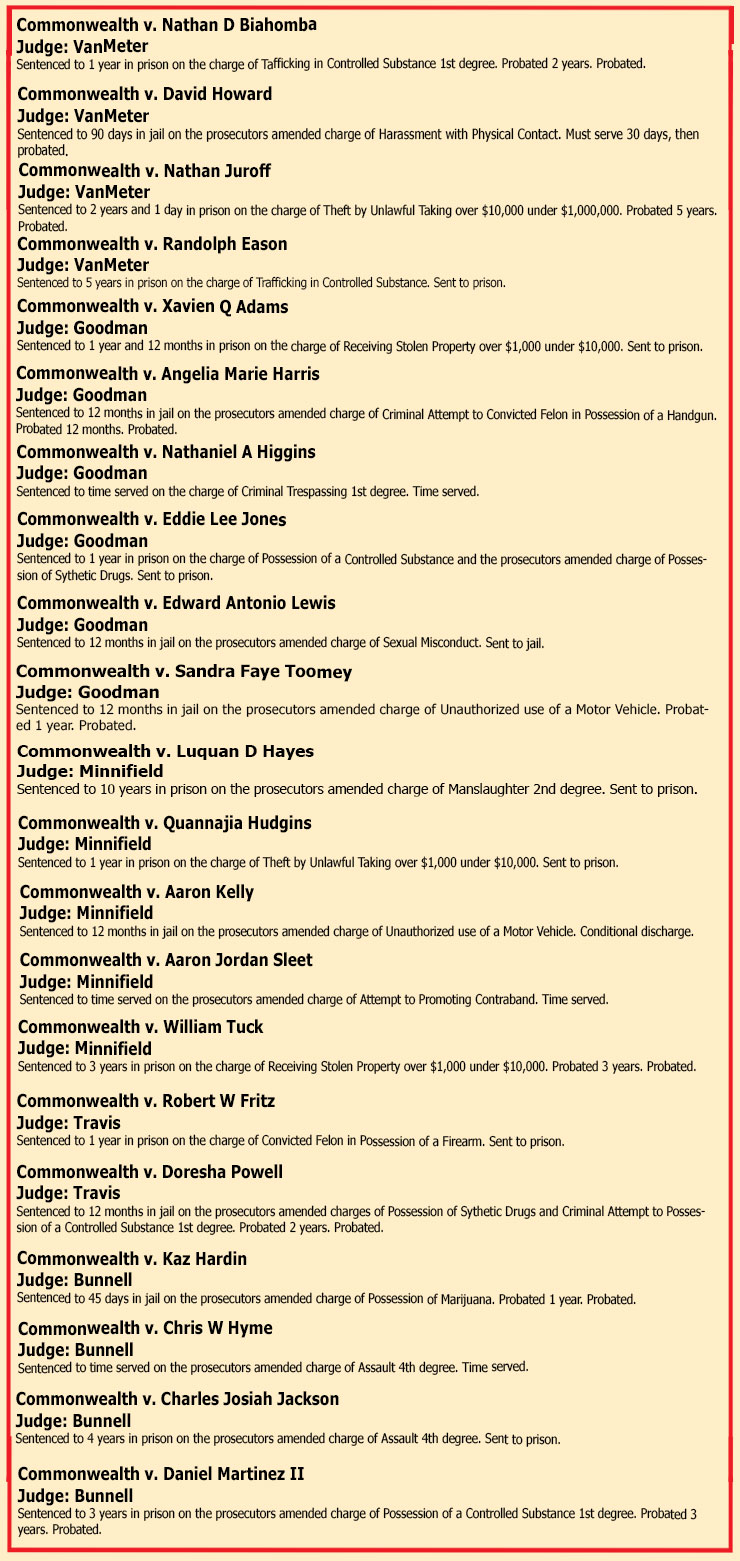 SENTENCINGS THE WEEK OF JANUARY 9TH, 2026