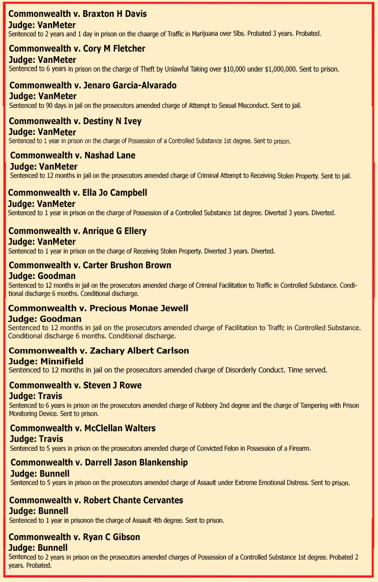 SENTENCINGS THE WEEK OF JULY 11TH, 2025