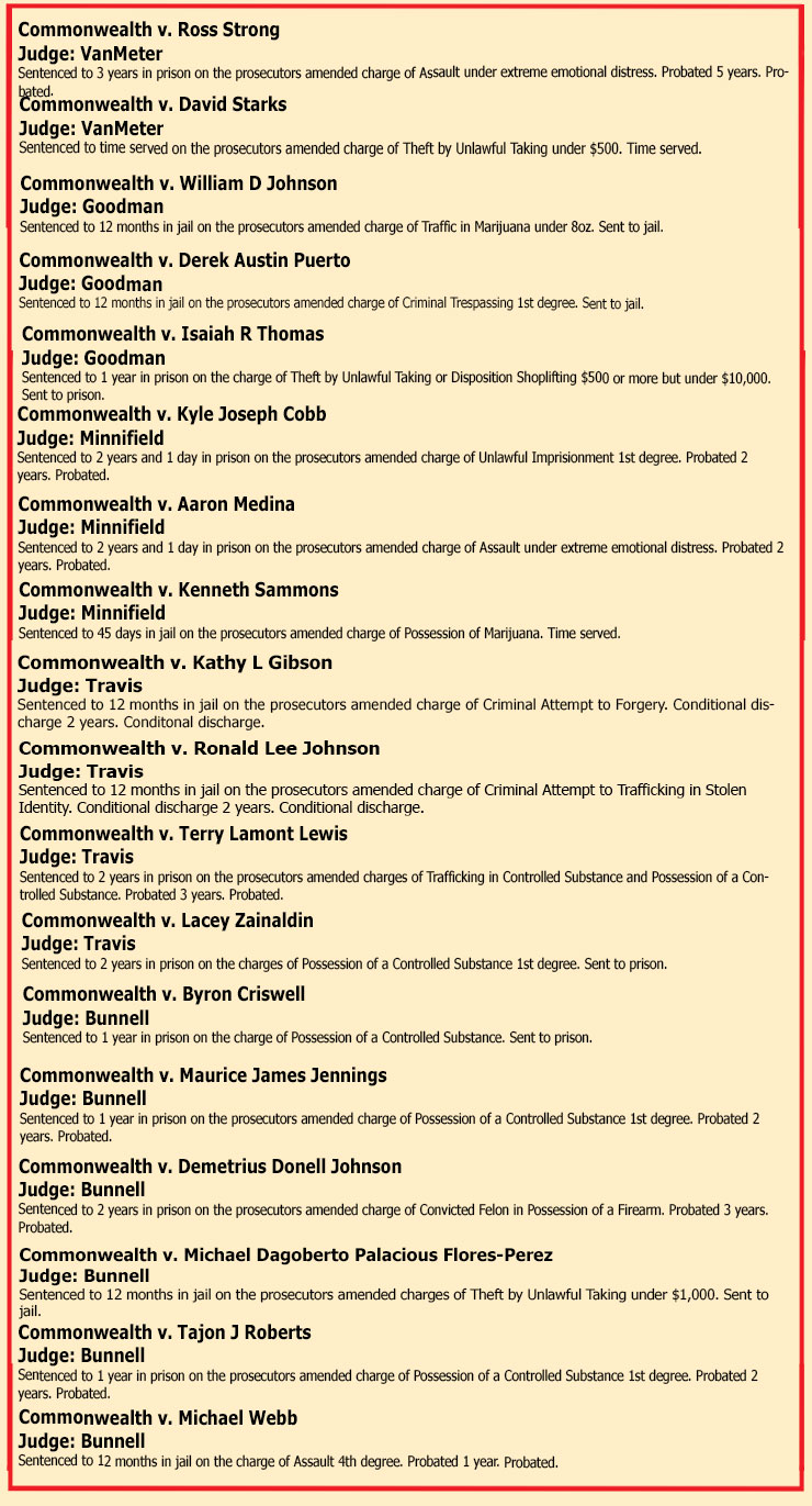SENTENCINGS THE WEEK OF JULY 25TH, 2025