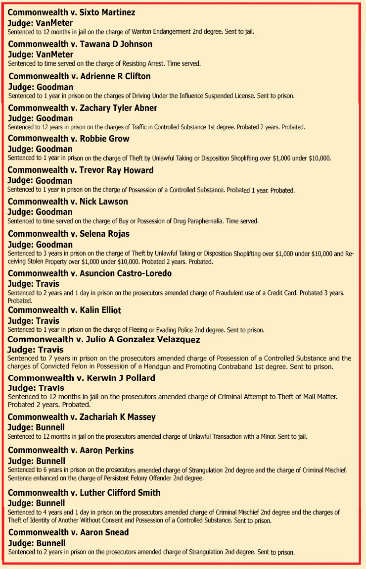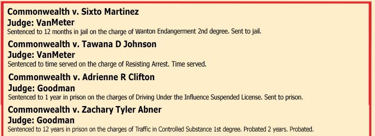 SENTENCINGS THE WEEK OF MARCH 13TH, 2026