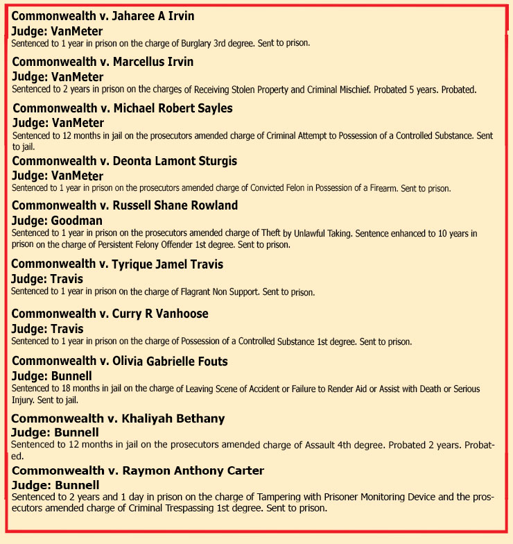 SENTENCINGS THE WEEK OF NOVEMBER 7TH, 2025
